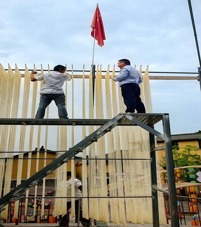 支部全体党员首先来到中江县挂面村,走进传统村落感受非遗文化与乡村产业融合发展的生动实践。作为国家级非物质文化遗产,中江挂面历史悠久、工艺独特,当地依托特色资源打造特色文旅村落,走出了一条“非遗+产业+文旅”的乡村振兴之路。在村内,大家沿着村落街巷实地察看,认真听取中江挂面的历史传承、制作工艺、产业发展等情况介绍,详细了解传统村落保护、人居环境整治、特色农业发展等成效。在非遗体验环节,老党员们亲自动手参与挂面制作,近距离感受传统手工艺的匠心与魅力。大家纷纷表示,挂面村立足资源禀赋、做强特色产业,是乡村振兴战略落地见效的鲜活案例,充分展现了新时代农业农村发展的新气象。作为长期深耕“三农”战线的老同志,虽已退休,仍将持续关注绵阳农业农村发展,积极为乡村振兴建言献策。