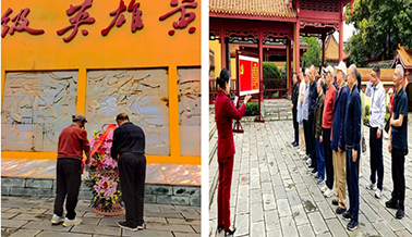 随后,全体党员怀着崇敬的心情前往黄继光纪念馆,缅怀革命先烈,传承英雄精神。纪念馆庄严肃穆,松柏苍翠,在刘登成书记、杨昌隶主任带领下,全体党员整齐列队,向特级英雄黄继光敬献花圈,整理缎带、肃立默哀,并庄严行礼,深切缅怀先烈的英雄壮举和崇高精神。在原市委农办主任陈伟领誓下,全体党员面向党旗举起右拳,重温入党誓词。铿锵有力的誓言回荡现场,进一步坚定了大家不忘初心、牢记使命的政治信念。