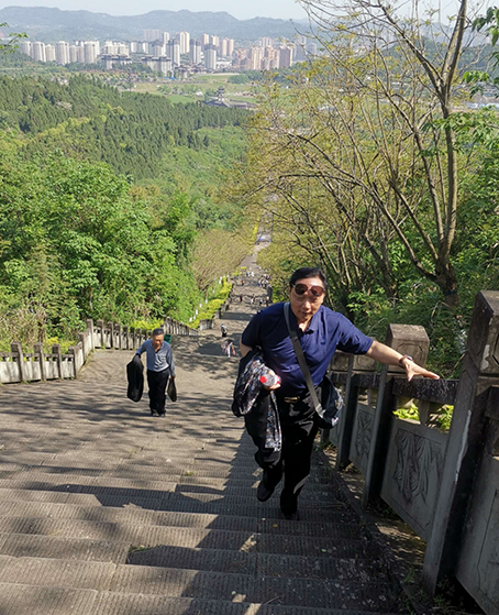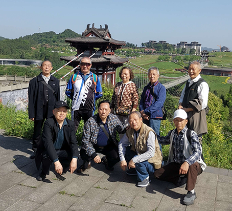为了进一步感受孝心文化,年过 70的覃帮富、田国民、杨兴明、张洪等老同志沿着 999级青石孝心台阶攀登,深刻领悟“久久重阳,孝行长久”的寓意。通过不懈努力,终于登上了山顶的孝心阁。许多年轻游客都为这群老人竖起了大拇指。