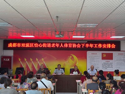 2025年9月9日,成都市双流区怡心街道老年人体育协会,在街道双塘社区二楼会议室,召开下半年工作安排会。参加会议的有街道老体协全体驻会人员和十二个社区老体协分会全体班子成员,各团队教练员,共50余人。会议由老体协负责人黄正国主持。