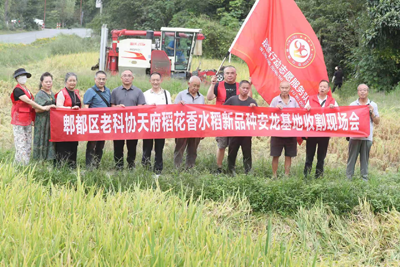 稻浪翻滚迎丰收 科技助农促振兴——郫都区老科协在安龙村召开水稻新品种收割现场会