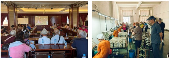 上午,在宜宾市老科协常务理事王良引导下,德宏州老科协会员一行到陇川县实地调研了蚕桑基地、智能化小蚕共育、大蚕饲养工场,边看边听介绍,了解陇川县近两年宜宾——德宏两地老科协开展跨区域深度合作以来,陇川蚕桑产业高质量发展情况。在基地调研了蚕桑生产第一车间后,又走进位于陇川工业园区的第二车间,通过视频播放详细了解缫丝、制绸的全过程。