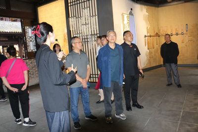 2025年10月4日,都江堰市老科协会长刘刚带领市老科协茶文化研究会会长黎怀鸿,教文体旅工委副主任、历史文化研究学者王克明和茶文化专家、四川省收藏家协会常务副秘书长戴开林,赴崇州市街子古镇华阳国志馆参观、学习、交流。