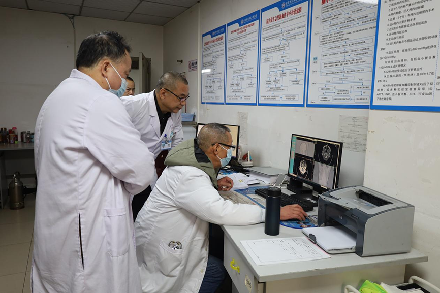 在区人民医院“健康科普”带教查房活动现场。两名市级专家带领区医院、部分乡镇卫生院医务人员深入病房,针对多例疑难病例详细询问病史、细致查体、翻阅病历资料等,逐一分析病情,与基层医务人员共同探讨诊疗方案,把几十年丰富的临床经验手把手传授给在场每位参与者,培养基层医务人员的临床逻辑思维、疑难病种辨识诊断、治疗方案优化等能力。同时专家还现场对医院急诊科标准化建设开展指导,从科室建设管理、人才培养、急诊急救流程优化再造等全方位指导,极大促进了医院即将接受上级急诊科达标验收提升整改工作。