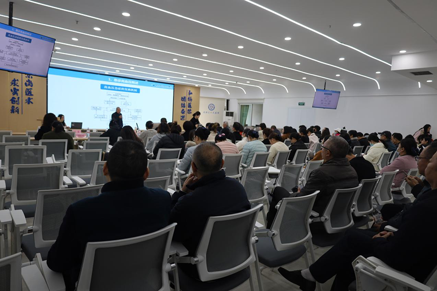 在区人民医院“健康科普”学术讲座活动现场。原市四人民医院急诊科主任、主任医师曹灵红带来《高血压急症》专题讲座。区级医疗卫生单位、乡镇卫生院、社区卫生服务中心部分医务人员近百人参加授课,参与学术交流探讨。曹主任运用扎实的理论功底,几十年丰富的临床经验从高血压急症的辨识、靶器官损害评估、高血压急症管理治疗等方面细致讲授,内容兼具专业性与实用性,课后针对日常医疗中遇到的困难和问题,与会人员与曹主任展开了交流互动,参会人员普遍反映收获满满,学有所获。