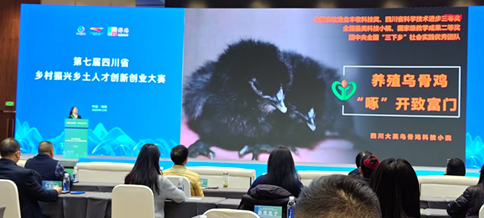 在总决赛比赛现场,成长组、成熟组、乡村振兴重点帮扶县及科技小院专项组共13名选手参与总决赛的角逐,讲述他们创新创业生动的实践故事。遂宁市大英乌骨鸡科技小院的李湘,讲述该科技小院先后吸纳了500余名本硕博学生加入,以“乌骨鸡改良—配套设施研发—中药开发—饲养管理技术研究—综合养殖技术示范”为技术路线,成功研发出新品种,可以实现250日龄上市,绿壳率达100%,带动农户年均增收1万余元,并且这套技术可以“复制”推广。