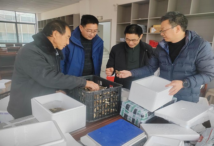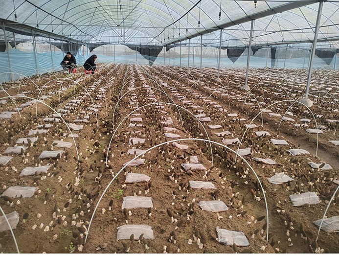 专家团队结合实地查看情况,精准指出当前生产中存在的问题:一是对极端天气应对预案不完善,菇棚四周保温围膜高度不够,造成冷空气对正在出菇的子实体顶部损害;二是部分菇棚羊肚菌的营养袋摆放偏迟,造成菌丝未能有效吸收营养袋营养;三是部分营养袋感染杂菌,发生菇蚊危害,影响出菇产量与品质。针对存在的问题,专家建议:一要采取有效保温措施,加强大棚四周保温围膜的高度,使用保温性能好、抗老化性能强的po膜,积极应对即将来临的低温对子实体和菌丝造成冻害;二要及时预防蛞蝓、菇蚊等虫害;三要及时关注气温变化,在气温适宜时补催菇水,促使早出菇早上市;四要注重钾肥施用,可每亩施用适量草木灰,促进单产和品质提升。