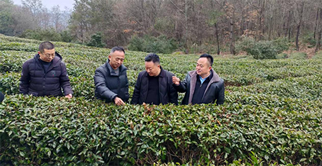 【1月20日,旺苍县老科协副会长何家纲(左二)到四川广旺茶业有限公司指导调研】