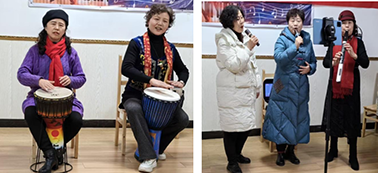 合唱结束后,医卫组会员轮番上场展示才艺。王庆菊、王英会员表演锣鼓敲打,梁远琼会员进行电子管演奏,王明芳、张光碧、李虹、赵川林等会员分别表演了独唱、重唱、对唱。会员们娴熟的技艺、悠扬的歌声,赢得现场阵阵掌声,不断将喜庆欢乐气氛推向高潮,同时展现了他们工作担当肯干、生活多才多艺新时代风采。