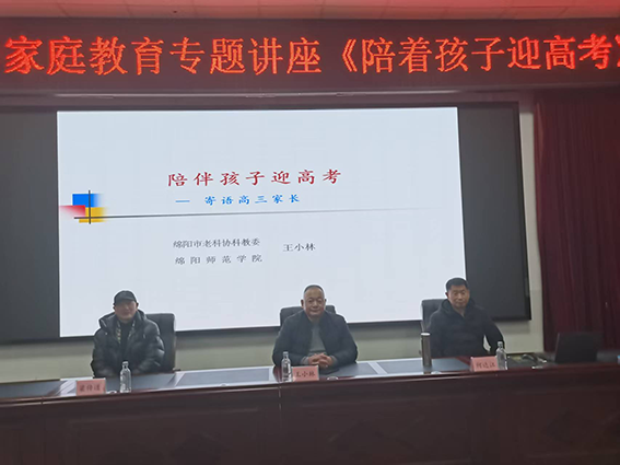 2月7日,江油第一中学学术厅内座无虚席,气氛热烈。一场以“陪着孩子迎高考”为主题的家庭教育专题讲座在此举行。此次活动由江油市家长学校总校主办,江油市家庭教育指导服务中心协办,江油第一中学承办,并得到绵阳市老科协科教委的全力支持与指导。绵阳市老科协科教委主任王小林携副秘书长何达江、梁传道亲临现场,200余名高三学生家长共同聆听了这场心理赋能盛宴。