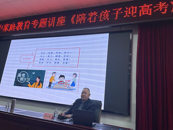 王教授特别引用了2012年上海合作组织峰会开幕式因高考推迟30分钟的典型案例,生动说明了高考在社会层面与家庭内部的特殊性与重要性,以及由此可能产生的巨大心理压力,引导家长正视压力的普遍性,学会与压力共处,陪伴孩子“轻松前行”,从心理方面为家长们开掘“迎考良方”。