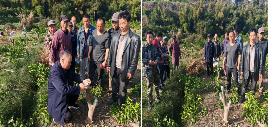 邹桂林专家在示范低效劣质柑桔园高桩芽接优质杂柑新品种的同时,引导果农规范实施“灌水促根、防治病虫、施花前肥、草生栽培”等柑桔园春管技术规程。