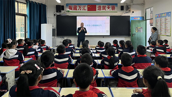 活动在热烈的氛围中拉开帷幕。达州市老科协理事、渠县人民医院副院长、资深医学专家冯靖雄以“阳光心态,快乐成长”为题,为孩子们带来一场生动的心理健康科普讲座。冯靖雄凭借多年的临床经验和科普工作热情,从青少年心理发展特点出发,通过鲜活案例和互动问答,引导孩子们正确认识情绪、学会自我调适,培养积极向上的阳光心态。他深入浅出的讲解、亲切和蔼的教态,赢得了师生阵阵掌声。