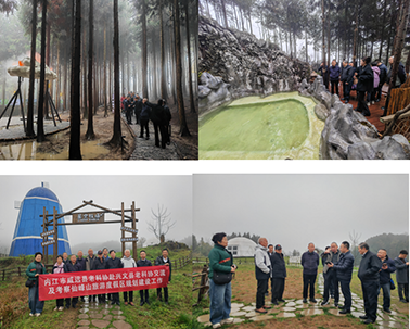威远县老科协顾问郭征,县老科技人才协会会长彭屏与兴文县文旅集团公司负责人李文强、马银华,实地探讨文旅发展新思路