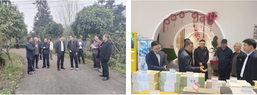 随后,调研组来到成都市和都江堰市老科协科技支农助农联系点——青城山茶叶有限公司道茶观光园,实地考察茶山、观摩茶艺、品鉴茶品。青城茶叶公司是全国农业农村信息化示范基地、国家有机产品及基地认证企业、全国名特优新农产品入选企业,同时也是四川省农业产业化重点龙头企业、省级示范休闲农庄。公司采用“公司+基地+科研院所+合作社+农场+农户”的产业发展模式,从事茶叶种植、加工、销售、研发及茶文化、茶旅游等业务,其青城道茶、青城雪芽、青城飘雪、青城雪竹等产品深受消费者喜爱。蔡敏勇和陶智全对都江堰市老科协助力“茶文化、茶产业、茶科技”“三茶”统筹发展给予充分肯定。