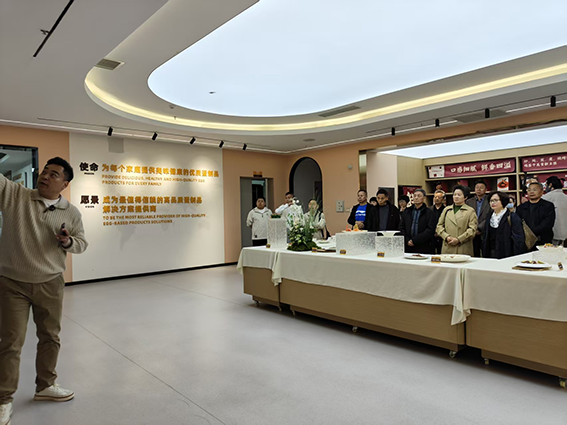 调研组一行首先参观考察了沈师傅食品有限公司智能化工厂,沈强总经理介绍了鸡蛋干系列产品研发、生产与销售情况,对公司拥有“营养变心蛋”发明专利,并通过ISO9001、SQF等国际体系认证,具备领先的研发与品控能力做了详细讲解。大家对公司投资2.8亿元打造的欧盟标准智能化工厂,其十万级净化车间、全自动产线与严苛的品控体系给予了高度评价。