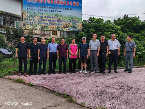在潮河镇后湾村龙眼老专家科技服务营地,龙眼专家高级农艺师张运华介绍了泸县针对龙眼产业存在的问题所开展的新品种、新技术引进、试验、示范、推广情况。根据新时代对产业发展要求,已经走出了一条高质量发展新路。双方就有关品种、技术、管理等关键内容进行了深入沟通交流;在潮河镇五谷寺村中稻+再生稻机收高产示范基地,水稻专家研究员陈应平介绍了基地情况:该基地示范面积800亩,试验水稻品种为甬优4949,目标产量1000公斤,技术路线是中稻再生稻高产栽培集成技术(即机收中稻+再生稻),现已实现中稻亩产量779.1公斤、再生稻亩产量420.2公斤,两季总产已达1199.3公斤。