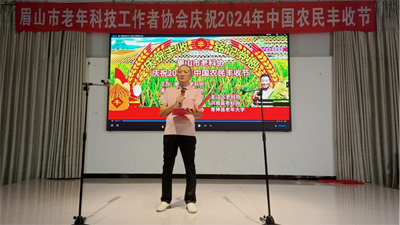 眉山市老科协会长李保华总结讲话,他说:庆祝活动主题突出,内容丰富,安排紧凑,欢声笑语,兴趣浓厚,充满丰收的气氛。不仅让人感受到了丰收的喜悦,也让大家看到了老年科技工作者们的风采和他们对科技事业的执着追求。