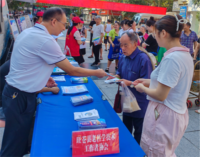 一是摆摊设点。县老科协在活动前精心准备,印制了崇尚科学、反对邪教、天府科技云、校园安全知识等科普知识资料。活动现场,科普员通过发放《科普知识》《青少年科普知识手册》《科学生活读本》等宣传资料共计3000余份,发放“老有所乐”帆布方便购物袋500余个。