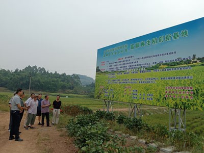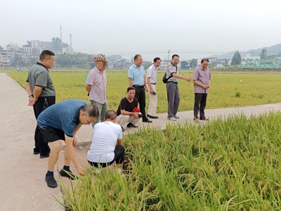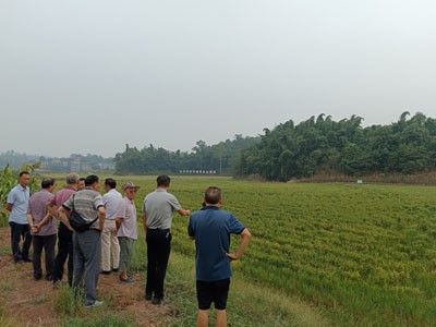 在由自贡市农科院、富顺县农业农村局、童寺镇政府合作建设的位于童寺镇栗寨村的水稻科研创新基地,大家观摩了水稻无人机直播、机收蓄留再生稻展示片及杂交稻育种材料培育和再生稻新品种筛选情况。在古佛镇凤仪村,调研组农技专家现场对“天府粮仓百县千片”—富顺再生稻百亩攻关片建设及“省稻香杯”26个优质稻新品种田间对比试验进行了专业指导。