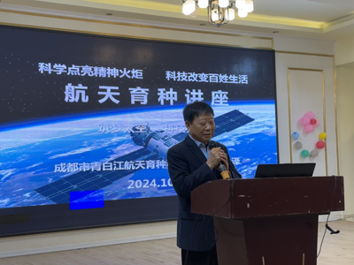 接着,区老科协党支部书记、青白江区航天科技小院院长施尚泽,结合全国科普日活动为大家作了航天育种专题讲座。他深入浅出地介绍了航天育种的原理、方法和应用前景,让老科技工作者们对这一前沿科技领域有了更深入的了解。同时对青白江区航天育种科技小院的发展建设、工作进展和取得的成果作了详实介绍。