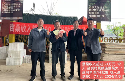 二是蚕桑专业村、专业户长足发展。目前已培养种桑养蚕30万以上8户、20万以上32户、10万以上135户,最高一户茧款收入达55万元,已建成12个蚕桑专业乡(镇)、40余个蚕桑专业村。