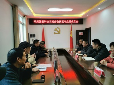 为把中国老科协“横向到边,纵向到底”的要求落到实处,强化基层组织建设,12月20日,南充市顺庆区老科协在新复乡政府会议室召开农村分会新复乡专业组成立会并授牌。区老科协会长陈简政出席并讲话,新复乡党委书记李勇出席并讲话,新复乡党委副书记、乡长陈泓宇莅会指导,区老科协副会长兼秘书长杨汉平,副会长张德清,农村分会会长王宗余及班子成员,新复乡专业组老专家邓朝轩、任晓琼等15人参加会议。区老科协常务副会长赵志云主持会议。