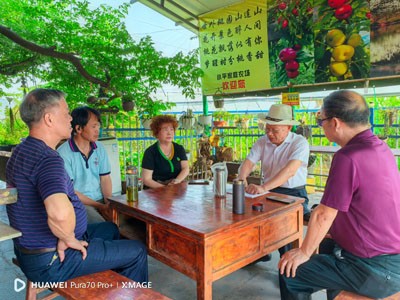 2025年5月20日上午,高坪区老科协会长张文通等一行四人驱车来到高坪喻家的小平家庭农场调查研究。一到农场,路旁色色鲜花竞相怒放,绿油油的苞谷亭亭玉立,排排避雨钢棚宛如身穿白色礼服的卫兵,株株油桃悬挂的果实闪着绿莹莹的亮光,犬吠鸡鸣尤如阵阵交响乐曲此起彼落,田间三三俩俩劳作的村民编绘着田园的丰收图,好一幅安宁祥和美丽的田园诗画。