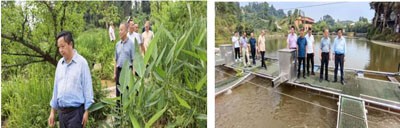 参观帝源农场观光项目(前一市老科协会长徐盛惠) 参观帝源农场水产养殖(右一市老科协会长徐盛惠)