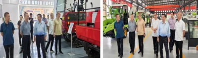 参观农机装备园展示产品(左三市老科协会长徐盛惠) 参观川达立盈农机装备公司生产车间(右三市老科协会长徐盛惠)
