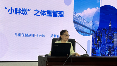 此次活动的科普讲座环节,由老科协社事专委副主任、儿童保健副主任医师吴新容为该校4年级130多名学生授课。吴新容医师针对目前影响儿童健康的近视和小胖墩两大问题,采用图文并茂的方式进行讲解。在预防儿童近视讲课中,她从爱眼日的由来,到近视形成的原因、产生的影响以及预防方法,都进行了详细阐述,并呼吁学校与同学们共同行动,从小学会保护视力,积极防控近视,共筑光明未来。在小胖墩——体重管理讲课中,吴医师指出,不良饮食习惯、缺乏运动是导致肥胖的主要原因。她向同学们介绍营养均衡的饮食搭配,鼓励大家多吃蔬菜水果,少吃油炸、肥肉等高热量、高脂肪食物,还强调了运动对健康的重要性,倡导同学们每天坚持体育锻炼,学会使用中小学生超重肥胖风险自测评估,将健康理念转化为实际行动,远离“小眼镜”和“小胖墩”,健康快乐成长。