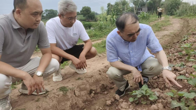 2025年5月27日,泸州市老科协农专委朱建忠、丁国祥、朱毓华一行赶赴合江县白米镇梨湾村、望龙镇圣灯寺村高粱基地,深入田间地头“把脉问诊”,指导专合社高粱生产。在白米镇梨湾村、望龙镇圣灯寺村高粱基地,针对高粱“心叶”枯死情况,农专委专家与专合社负责人等在高粱地里一起剥茎检查高粱茎秆,发现了螟虫幼虫活虫;针对部分高粱植株叶片变色发黄、发红情况以及部分出苗差、长势差的高粱地块,在田间认真询问、了解了专合社播种前土地整理、施底肥以及播种后出苗、中耕、追肥等田间管理情况,与专合社负责人一起分析、查找了高粱植株出现叶片变色发黄、发红以及部分出苗差、高粱长势差的原因,并对部分高地块高粱植株分蘖较多、除草方法等问题提出了针对性的处理方法建议。