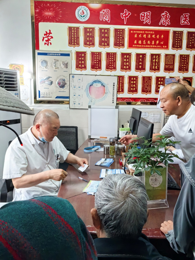 【苟院长正在诊断室给患者诊治】