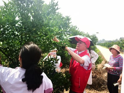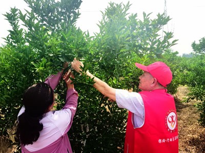 “乡村振兴”是眉州银龄行动”的重要主题之一,聚焦乡村产业振兴,市老科协组织老年科技工作者组成“眉州银龄·农技志愿服务队”,来到田间地头,为果农、粮农送上“良方”。当天,农技志愿者们分成小队,走进果园,实地查看柑桔果树生长情况,手把手指导果农观察果树长势、补剪枝条、浇水施肥。在集体果园里,4名农技志愿者为果农们讲解了病虫害防治、肥水管理、控制夏梢等具体知识,并针对果农问题进行了答疑解惑……一场在田间展开的课堂,淳朴的眉州乡音回荡,众人周围,爱媛悄然结出绿果,正在越变越大。