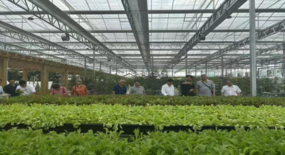 泸天化九禾公司农业分公司总经理胡小刚向专家们介绍了现代农业示范园的建设情况。示范园是先进的设施农业,利用AI智能技术,对一部分蔬菜水果进行科学的种植、施肥、观察、研究其生长特性,为大田生产提供技术依据。