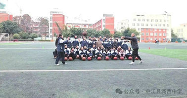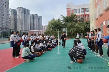 谢守江老师在学校操场,指导八年级 1 班的学生进行《篮球中考绕杆训练》,标准的示范、细致的纠错,助力同学们攻克中考难点,在奔跑跳跃中锤炼技能;赵小乐老师则带领七年级 2 班的学生,练习《篮球双手胸前传球》,耐心讲解动作要领,让每一位学生都能扎实掌握技能,在运动中收获快乐与成长。