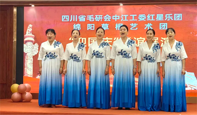 最后,省毛研会中江分会红星乐团与绵阳市草根艺术团携手奏响《歌唱祖国》与《友谊地久天长》,联谊展演在全体演员与观众的热烈掌声中圆满落下帷幕。器乐合奏激昂澎湃,歌声与旋律交织成对祖国的深情礼赞,也象征着两地艺术团体携手共进的深厚情谊。