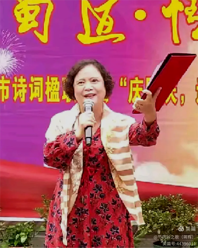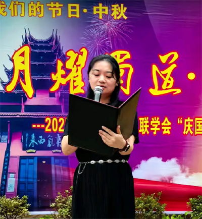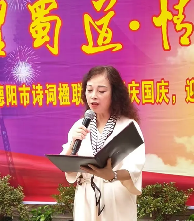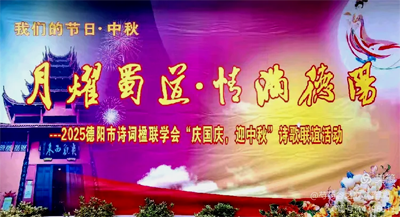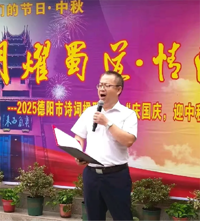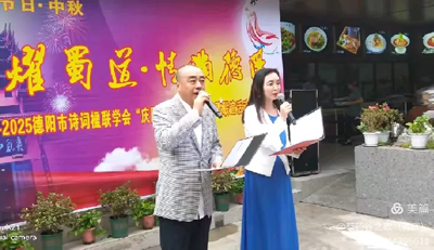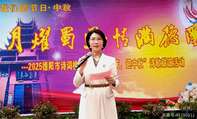 应德阳日报、德阳广播电视台的邀请,涂惠会长专题创作的《月耀蜀道· 情满德阳——致2025央视中秋晚会》主题诗作,在青藤、张卓、房建英、冯敏深情朗诵下,把这次国庆.中秋联谊活动推向高潮,赢得现场热烈的掌声。