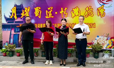 一组由本会会员谢启德创作的《桂月闻筝》、张玉果创作的《七绝·金桂》、冯雪梅创作的《中秋》、李友荣创作的《临江仙·中秋》、蒋辉创作的《情暖中秋》、吴成富创作的《中秋》、张远坤创作的《永遇乐·德阳旌湖》、肖泽创作的《水调歌头·中秋望月》、仇昌惠创作的《满江红·仲秋暮游旌湖有感》,一首首原创古体诗词佳作。在李军、李雪艳、张远坤、叶霭梅的诵读下,将他们对佳节的喜爱、对家乡德阳的眷恋,深深融入在作者沉醉笔墨里的情怀。