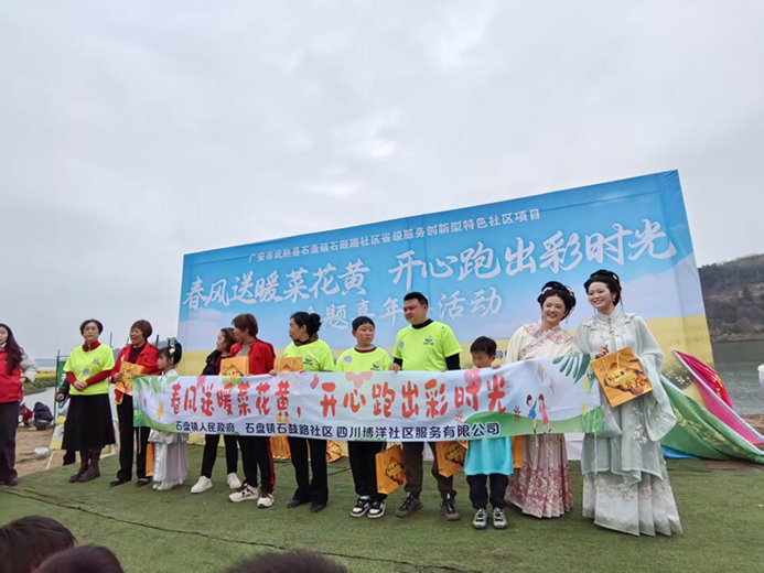 活动现场精彩纷呈,金色油菜花海与嘉陵江美景交相辉映。开幕式热闹非凡,“春风送暖菜花黄 开心跑出彩时光”乡村跑、放风筝、垂钓、摸鱼、抓鸡兔等趣味项目轮番上演,汉服爱好者漫步花间,衣袂飘飘,成为花海中一道古典雅致的美景;讲评书、烤面包等特色体验活动,让游客在赏景游玩之余感受民俗文化与手工乐趣。