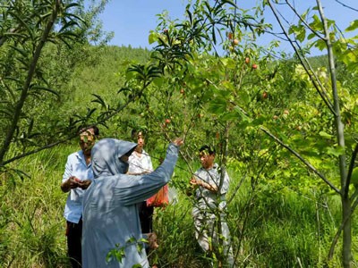 张平一行详细了解今年李子挂果情况,特别关注因长时间干旱和气温波动对果树生长的影响。针对当前果园的实际情况,提出科学管理建议:及时清除落叶、枯枝和病果,减少病虫害滋生。通过合理修剪病枝、弱枝和过密枝,改善树冠通风透光条件,促进树体健康生长。夏季修剪则有助于控制新梢生长,促进花芽分化。