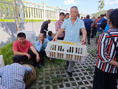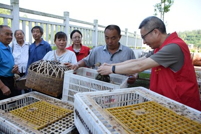 三个多小时的培训结束后,观山镇水池村培训点的61名残疾人走出“教室”,拿起事先准备好的竹筐、背篼等排队领取鸭苗。“但翠明、余水娟,到了没有?每人50只(鸭苗),拿家伙来装!”县残联党员先锋队队员点名后,理事长但伟权双手一次性捧起3只“惊慌失措”的鸭苗小心翼翼地放进了余水娟的竹筐里。
