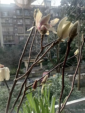 进入农历冬月,女儿陆续弄回玉兰、腊梅之类花草。我与老伴将两三支玉兰斜插玻瓶,未沾泥土,置于窗台,每天耐心伺弄、细细观察,甚为欣喜,玉兰在料峭寒风里竟悄然初绽,把一室清冷染得温润起来。