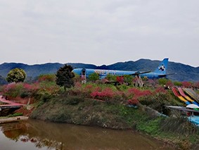 今日有幸随团同游,恰逢桃花盛放,一路春光正好。我们打卡别具特色的大飞机餐厅,乘坐复古小火车,搭乘观光车遍览全园风光。上百亩珍稀红豆杉已然成林,绿意葱茏,尽显生机。桃林正值盛花期,春风微拂,细雨轻洒,粉瓣翩然飘落,嫣然笑对东风,诗意盎然。
