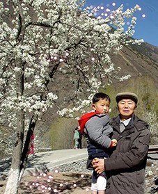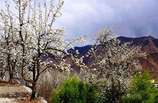 继而,小车于小沟内、花丛中向位于原金川农场高坡上的移动电话基站盘旋而上。一家人下车后,凭借“一览众山小”的地势举目远望,将金川河谷环抱中的沙尔、咯尔和庆宁乡尽收眼底:远处,山巅白雪皑皑,山下树木葱郁,河两岸梨树丛丛,绵延10多公里的山坡、河坝皆白茫茫的一色!彼时彼刻,我们心境豁然开朗,情绪为之升华,无不为视野里“千树万树梨花开”妆成的美丽壮观的景致所叹服!