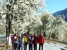 时光在或近观远眺、或树下流连、或梨园小憩之中流逝。不觉正午已过,我们方于花的海洋中盘旋下山,到金川县城午餐。