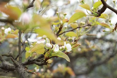 山顶古刹,名曰“佛来”,始建于唐贞观年间。相传玄奘西行归来,曾于此驻锡讲经,见山民苦于旱涝,遂授以植梨之法,祈愿“佛赐甘霖,梨荫众生”。寺中现存宋碑一方,铭文记载:“佛来山梨花,乃禅心所化,观之可明性,食之可延年。”千年香火不绝,檐角铜铃随风作响,梵呗之声与花香交织,恰似东坡诗云:“花落僧衣净,风摇禅榻清”。寺内壁间,历代文人题咏斑驳可见。太白醉书“梨云万叠映空明,佛国春风不染尘”,墨迹犹存;陆游曾留“古寺梨花三月雪,山门不掩待游人”之句,字里行间可见禅意与诗心交融。今人亦效仿古人,于廊下悬纸笔,任游客题诗寄怀,花影墨香,相映成趣。