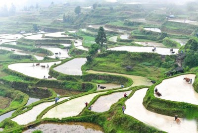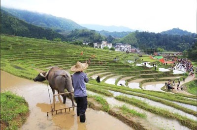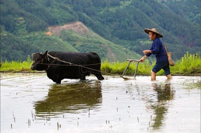 耕耘阡陌犁耙汉,采撷云霞背篓姑。