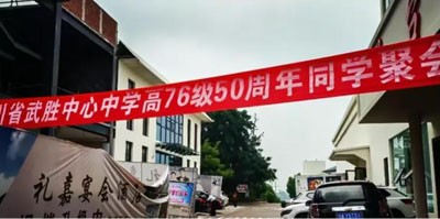 清晨的熹光和细雨,拍打着武胜洁净的街道。一行行匆匆的身影,正向礼嘉山庄报到。来了,来了,似曾相识的面厐,你好,你好,握手,拥抱。五十年的相思,五十年的离别,五十年的追忆,五十年的祈祷。化作惊喜,化作话语滔滔。同学,老同学,同一个班级,同一条战壕。同一种命运,曾读同一学校。聊吧,聊吧,笑啊,笑啊,个个激动,满眼含笑。一号大厅,座无虚席。各班的圆桌,早已摆好。说不完的趣事,谈不够的今朝。丰盛的饭菜剩了很多,彼此还在细聊、细聊……。