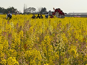 野舍鸡香充午膳,平畴金浪卷春涛。